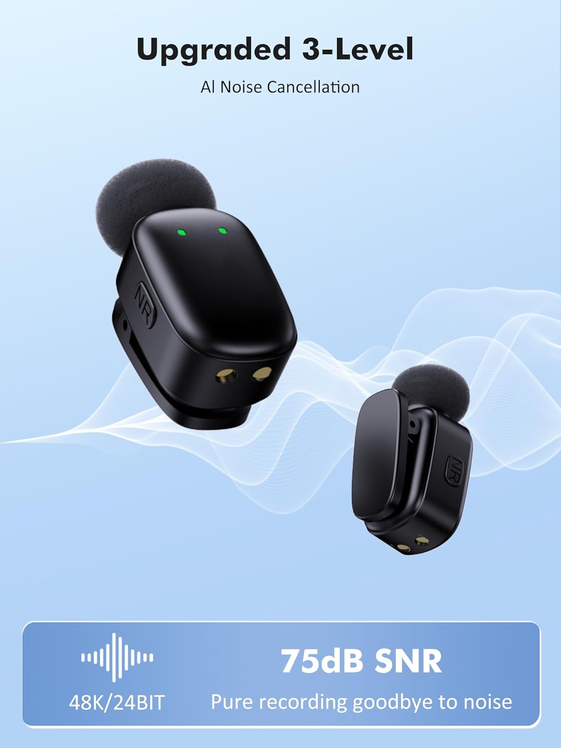 ● AI Voice Change & DSP Noise Reduction: This wireless microphone lets you choose from three AI voices - Goddess, Uncle, Original - instantly via double-clicking the RX button for fun interactions. The lavalier microphone for recording features 3-level adjustable DSP noise reduction for clear speech in any environment, delivering a crisp audio experience